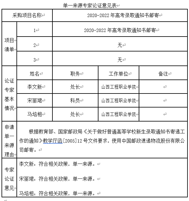中北大学就2020-2022年高考录取通知书邮寄项目申请单一来源方式采购,该项目预算金额43.2万元,拟成交供应商为中国邮政速递物流股份有限公司太原市分公司。
