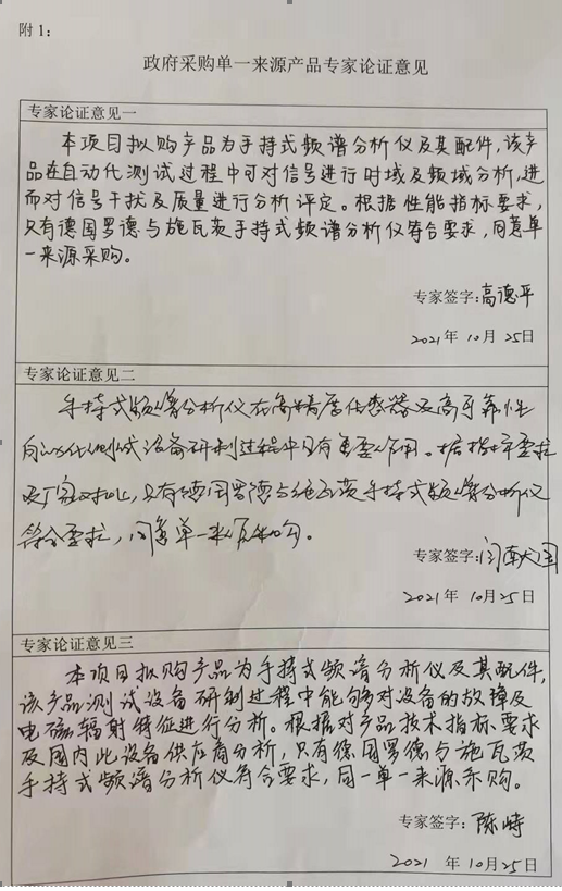 手持式频谱分析仪可在实验室或现场对各类传感器信号进行时域或频域分析,可对测试测量系统电磁辐射外泄进行空口捕获分析,实现故障分析、电磁辐射安全、电磁辐射特征等分析需求;也可对测试测量系统内置无线数据传输模块的发射信号进行空口测量,判断干扰和信号质量。考虑到预期测量信号(开路或闭路)的大动态范围因素,需要手持式频谱分析仪在频率范围、测量灵敏度、相位噪声等方面有较高的性能指标,同时对于空口信号的测量,需配置不同频段定向天线并与设备相兼容。根据市场调研,目前上述需求只有德国罗德与施瓦茨手持式频谱分析仪FPH及其定向天线符合要求;罗德与施瓦茨(中国)是德国罗德与施瓦茨仪器在中国的唯一的供应商,山西蓝筹电子科技有限公司是德国罗德与施瓦茨(中国)在国内负责高校仪器设备及其配件销售服务的华北地区经销商。因此,拟申请单一来源采购手持式频谱分析仪及其配件。