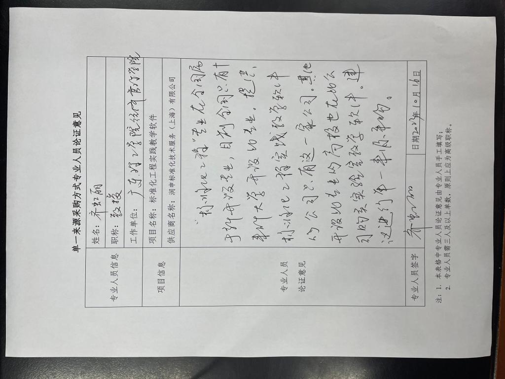 采用单一来源采购方式的原因及说明:目前开设“标准化工程”本科专业的大学非常少,在全国只有9个学校,开发“标准化工程”专业实验平台的企业只有润申标准化技术服务(上海)有限公司,全国仅此一家。