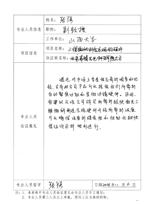 拟采购的货物或服务的说明:中北大学三维微纳制造平台是从立陶宛进口,目前缺乏聚焦能力,需要从原厂进行系统和硬件设备采购。