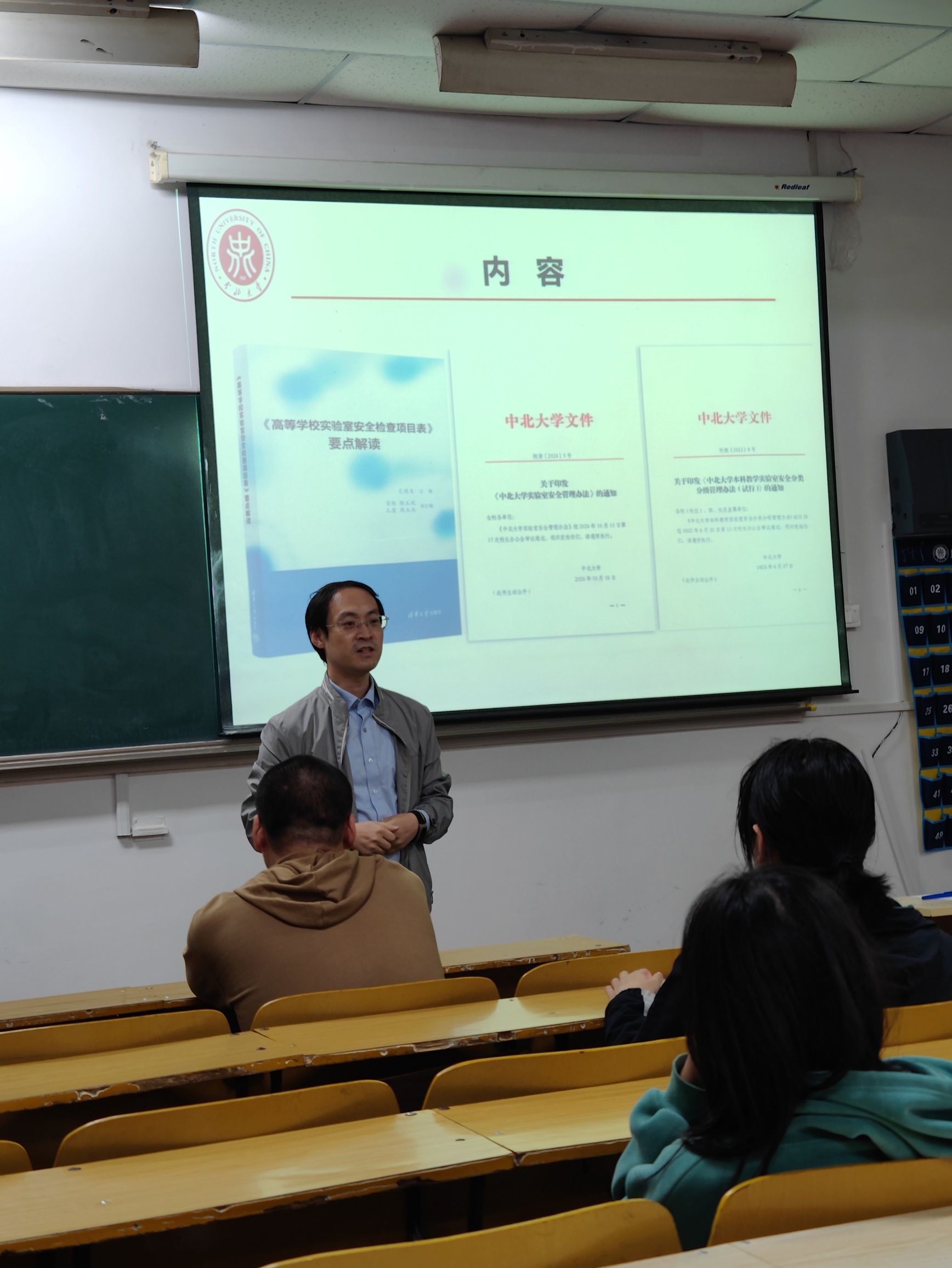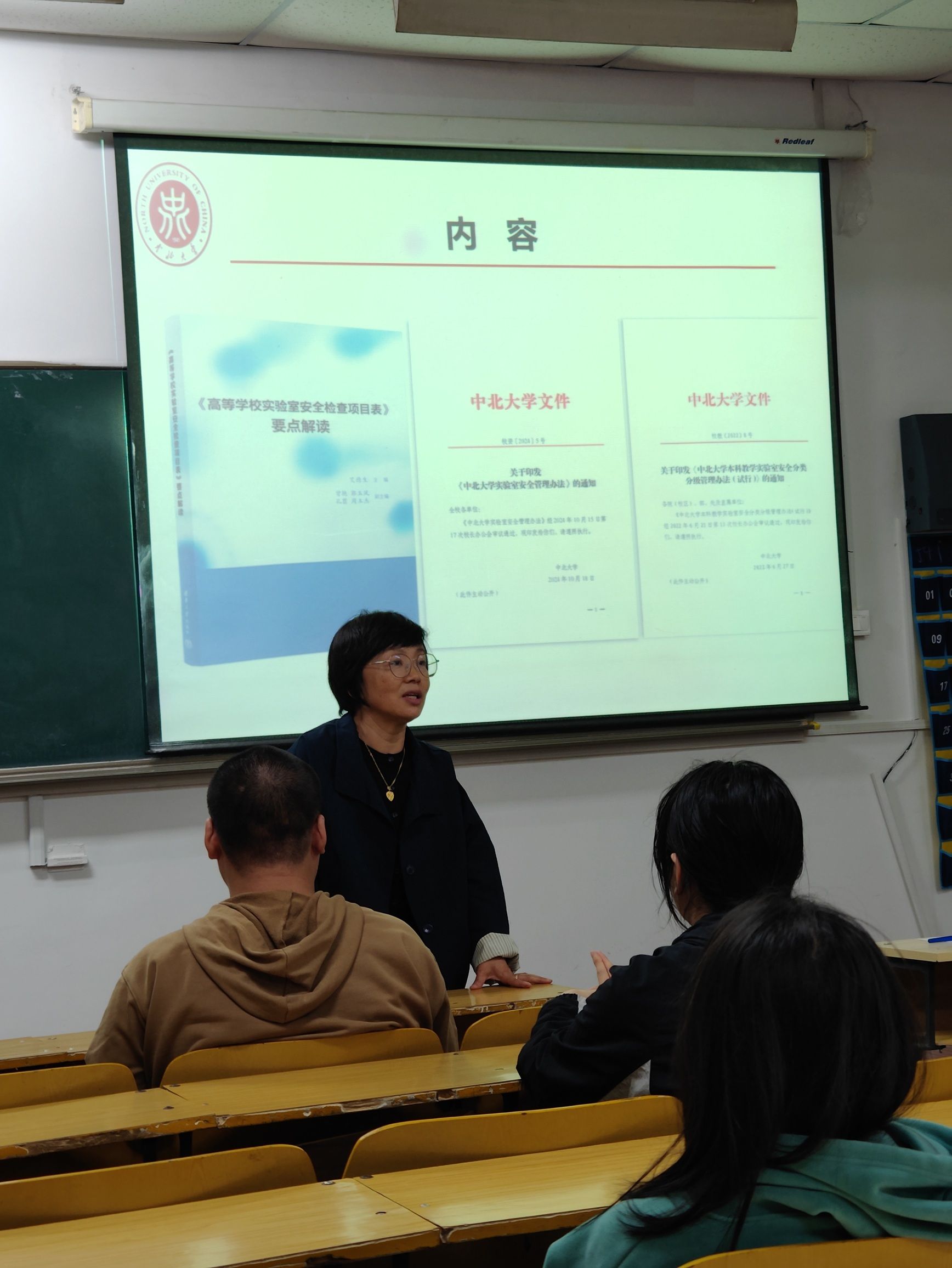 培训环节中,崔超老师结合教育部《高等学校实验室安全检查项目表》及学校《实验室安全管理办法》等规章制度,从岗位职责、工作原则、检查流程等维度展开详解,重点解读了危化品存储规范、应急预案启动等实操要点。王博老师聚焦沟通技巧,提出“刚性原则+柔性关怀”的工作方法,指导学生安全员在隐患排查中既要坚持标准,又要注重人文关怀,确保安全管理工作落地见效。