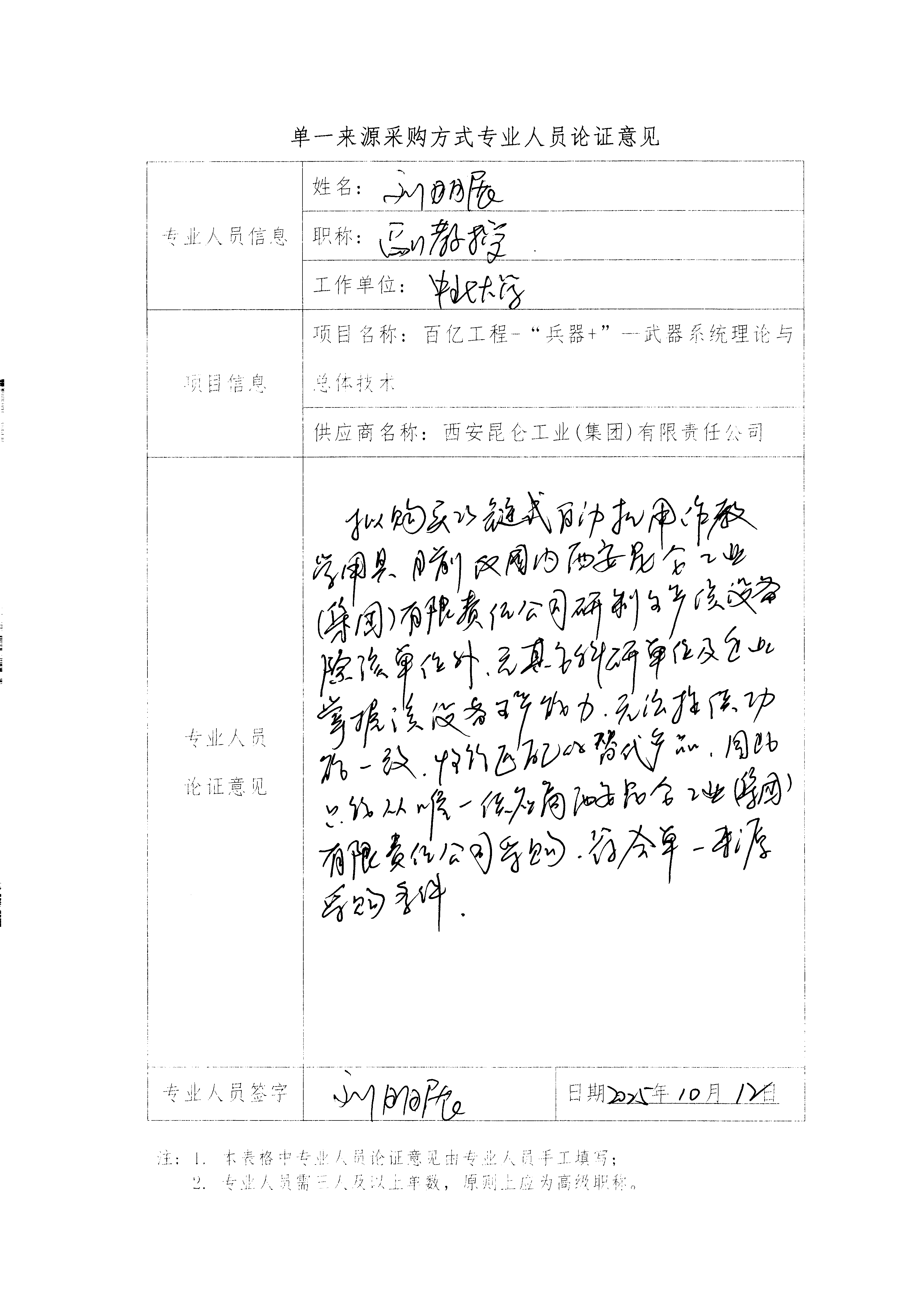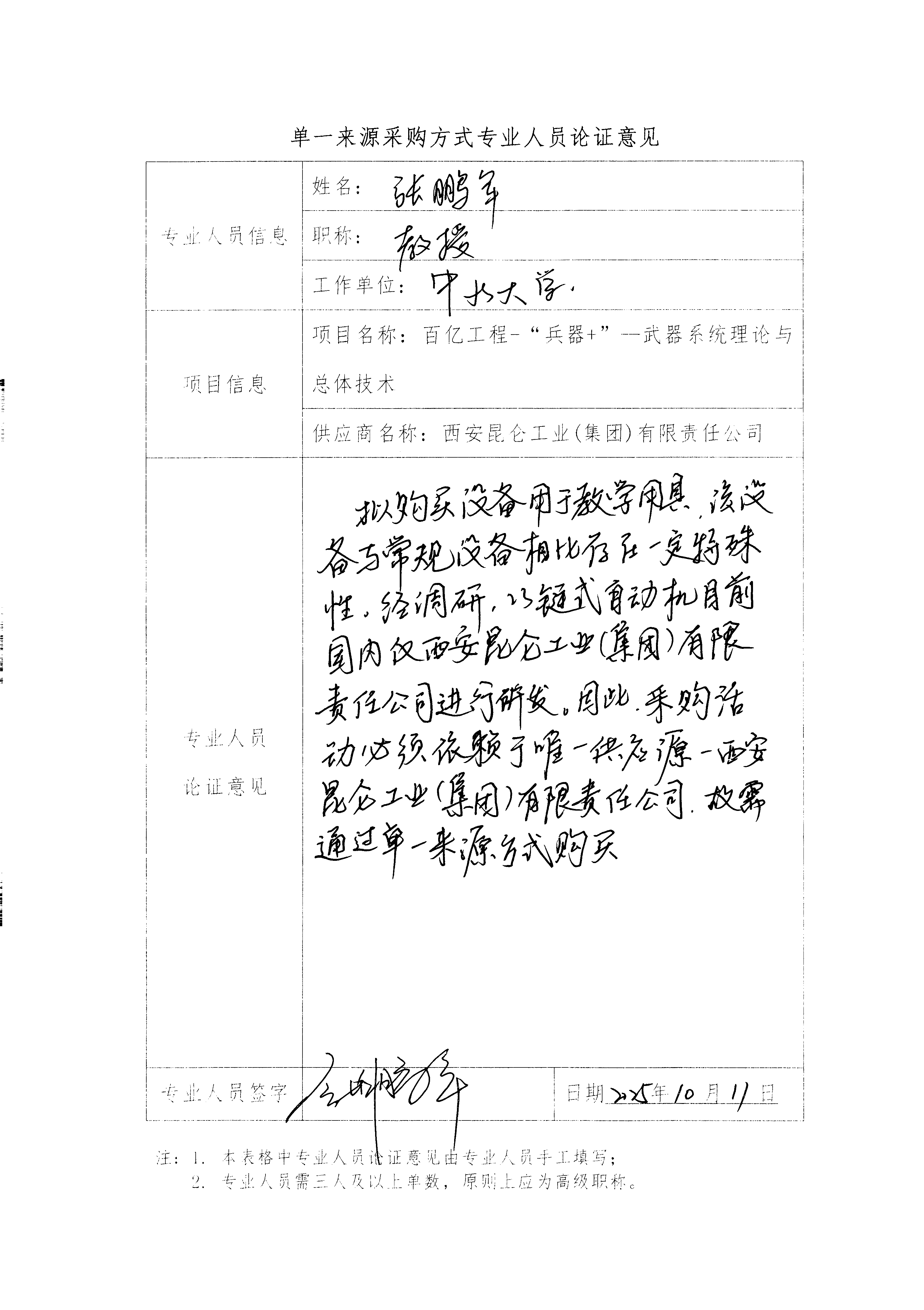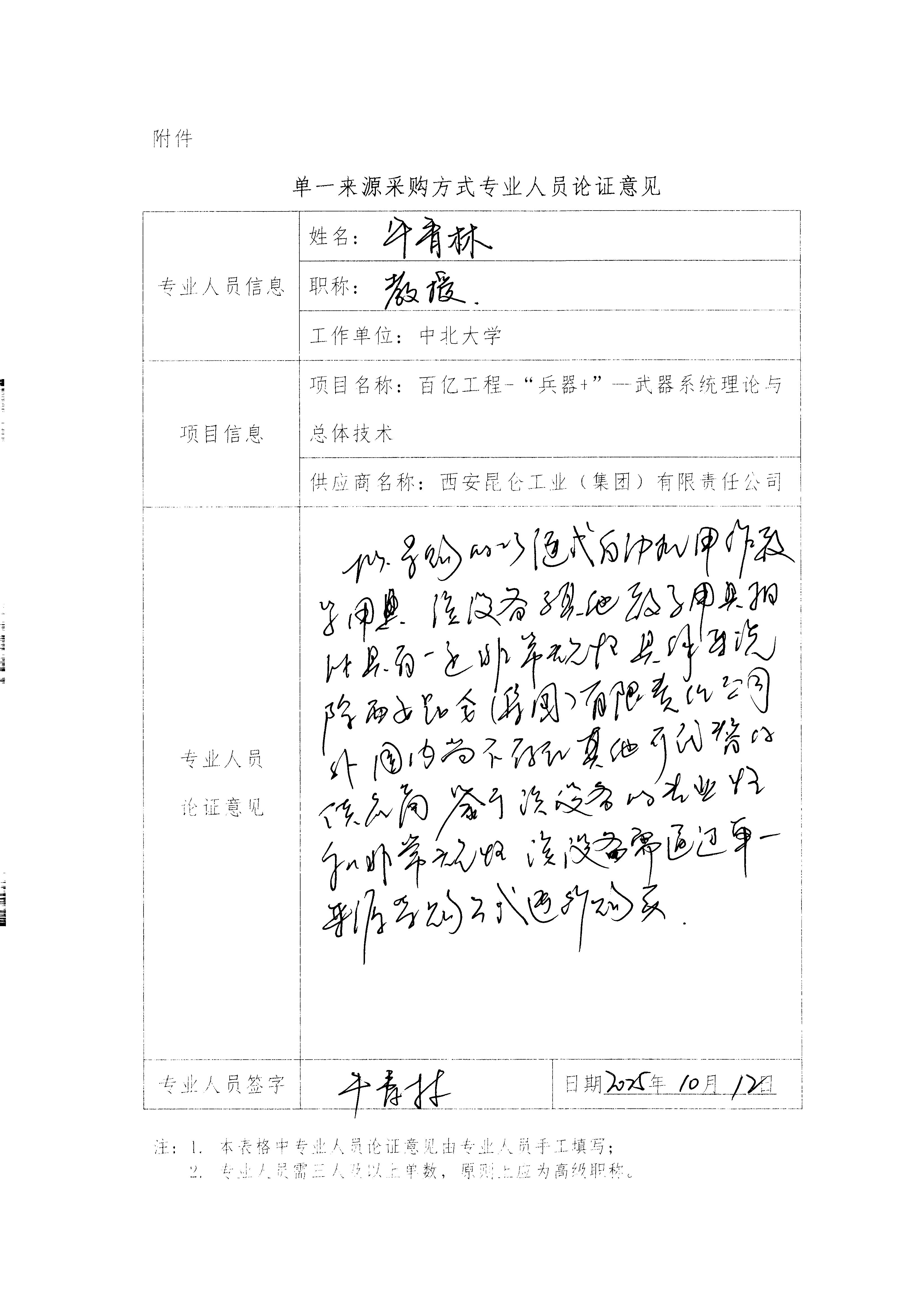 原项目引入 23 链式自动机,经调研,目前国内仅西安昆仑工业(集团)有限责任公司一家进行研发,因此对我校百亿工程-“兵器+”—武器系统理论与总体技术项目申请单一来源采购。